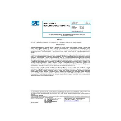 SAE ARP5151A Safety Assessment of General Aviation Airplanes and Rotorcraft in Commercial Service