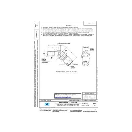 SAE AS4231D FITTING, ELBOW, 45¿¿, BULKHEAD, EXTERNAL THREAD, BEAM SEAL TO INTEGRAL WELD RING