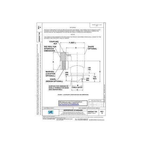 SAE AS85049/84D CONNECTOR ACCESSORIES, ELECTRICAL, BACKSHELL, 90¿¿, SELF-LOCKING, SHIELD BAND TERMINATION, (RFI/EMI), SHRINK SLEEVE ACCOMMODATION, CATEGORY 3B (FOR AS50151 CRIMP, AS95234, MIL-DTL-26482 SERIES 2, AS81703 SERIES 3 AND MIL-DTL-83723 SERIES III CONNECTORS)