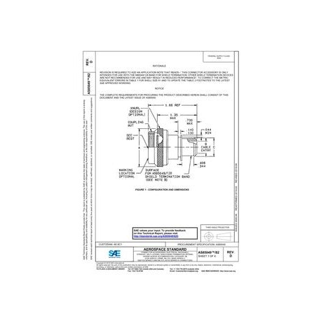 SAE AS85049/82D CONNECTOR ACCESSORIES, ELECTRICAL, BACKSHELL, STRAIGHT, SELF-LOCKING, SHIELD BAND TERMINATION (RFI/EMI), SHRINK SLEEVE ACCOMMODATION, CATEGORY 3B (FOR AS50151 CRIMP, MIL-DTL-26482 SERIES 2, AS81703 SERIES 3 AND MIL-DTL-83723 SERIES III CONNECTORS)