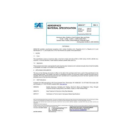 SAE AMS4319C Aluminum Alloy, Rolled or Cold Finished, Bars and Rods 12.2Si - 1.0Mg - 0.90Cu - 0.90Ni (4032-T651) Solution Heat Treated, Stress Relieved, Artificially Aged