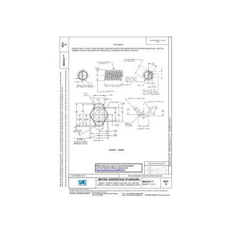 SAE MA3331D INSERT, SCREW THREAD, HELICAL COIL, METRIC SERIES, SCREW LOCKING, CRES, CADMIUM PLATED