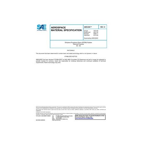 SAE AMS3260D Ethylene-Propylene-Diene (EPDM) Rubber General Purpose 45 - 55 (Stabilized: Jun 2019)