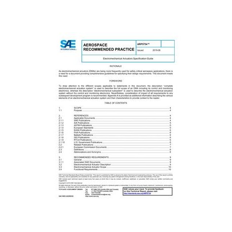 This Aerospace Recommended Practice (ARP) provides general characteristics, requirements, and design data to be recommended for inclusion in a procurement technical specification of an electromechanical actuator (EMA), including its control and monitoring.