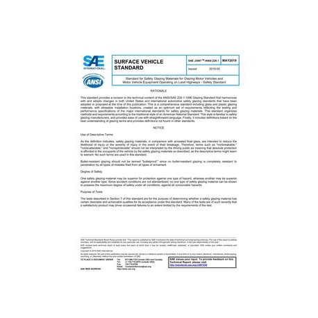 SAE J3097Z26_201905 Standard for Safety Glazing Materials for Glazing Motor Vehicles and Motor Vehicle Equipment Operating on Land Highways - Safety Standard