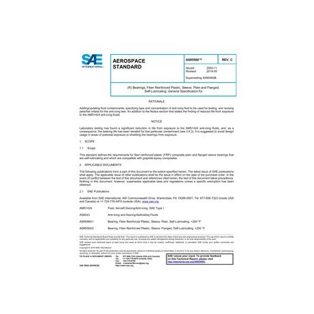 SAE AS85560C Bearings, Fiber Reinforced Plastic, Sleeve, Plain and Flanged, Self-Lubricating; General Specification for