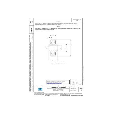 SAE AS21443C BEARING, BALL, AIRFRAME ANTI-FRICTION, PULLEY