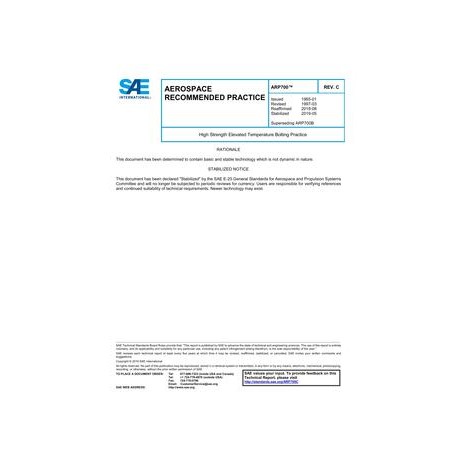 This SAE Aerospace Recommended Practice (ARP) provides general information on the design and installation of threaded fasteners in high strength and high temperature applications in propulsion systems. Some of the more common definitions of fastener terminology are also provided.