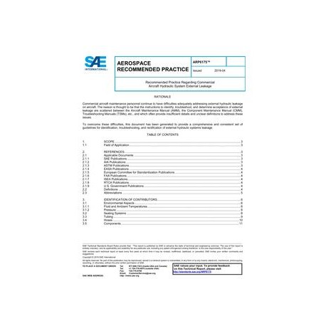 This Aerospace Recommended Practice (ARP) provides a comprehensive and consistent set of guidelines for the definition, recognition, troubleshooting and repair of hydraulic components and systems on in-service commercial aircraft affected by external leakage.