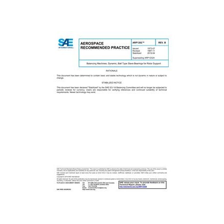 SAE ARP1202B Balancing Machines, Dynamic, Ball Type Slave Bearings for Rotor Support (Stabilized: Apr 2019)
