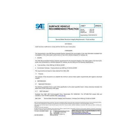 This SAE Recommended Practice presents requirements for the structural integrity of the brake system of all new trucks, buses, and combinations of vehicles designed for roadway use and falling into the following classifications:a Truck and Bus - Over 4500 kg (10 000 lb) GVWRb Combination Vehicles - Towing vehicle over 4500 kg (10 000 lb) GVWRThe requirements are based on data obtained from SAE J294.