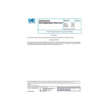 This SAE Recommended Practice (ARP) establishes flexure test procedures to determine and classify the fatigue strengths of reconnectable or permanent hydraulic tube joints.The procedure is intended for conducting flexure tests of fittings and joints for hydraulic tubing materials such as AMS 5561 (21Cr-6Ni-9Mn) steel or AMS 4944 (3AL-2.5V) titanium.A mean stress is applied by holding system pressure in the specimens and flexing in a rotary or planar bending test machine.