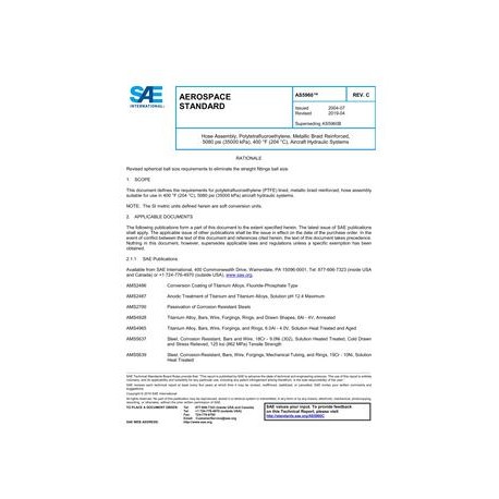 This document defines the requirements for polytetrafluoroethylene (PTFE) lined, metallic braid reinforced, hose assembly suitable for use in 400 degrees F (204 degrees C), 5080 psi (35000 kPa) aircraft hydraulic systems.NOTE: The SI metric units defined herein are soft conversion units.