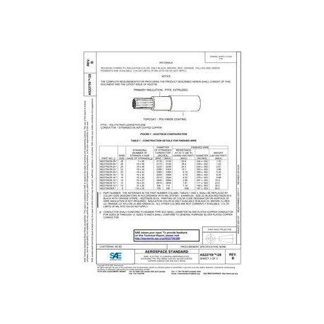 SAE AS22759/28B WIRE, ELECTRIC, FLUOROPOLYMER-INSULATED, EXTRUDED TFE, POLYIMIDE COATED, SILVER-COATED COPPER CONDUCTOR, 600-VOLT, ROHS