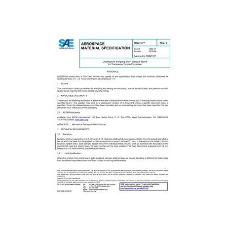 SAE AMS2310G Qualification Sampling and Testing of Steels for Transverse Tensile Properties