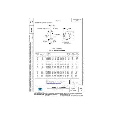 SAE AS5178C NUT, FITTING, BULKHEAD