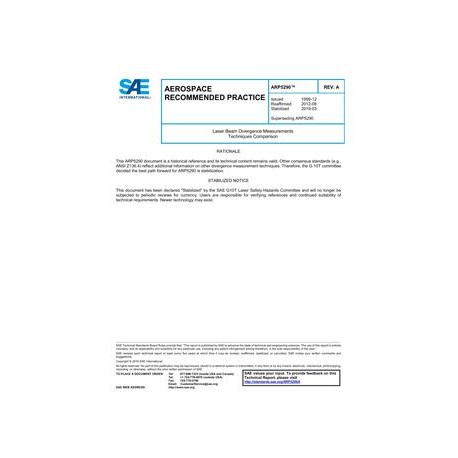 SAE ARP5290A Laser Beam Divergence Measurements Techniques Comparison (Stabilized: Mar 2019)