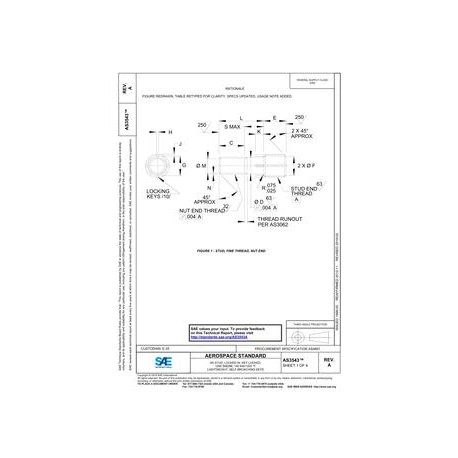 SAE AS3543A STUD, LOCKED IN, KEY LOCKED, UNS S66286, 140 KSI/1200 ¿¿F LIGHTWEIGHT, SELF-BROACHING KEYS