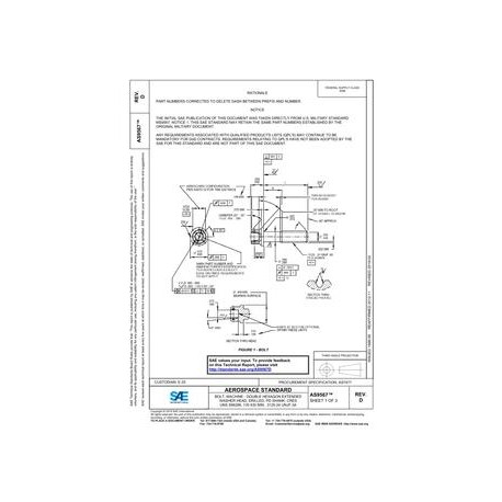 SAE AS9567D BOLT, MACHINE - DOUBLE HEXAGON EXTENDED WASHER HEAD, DRILLED, PD SHANK, CRES UNS S66286, 130 KSI MIN, .3125-24 UNJF-3A