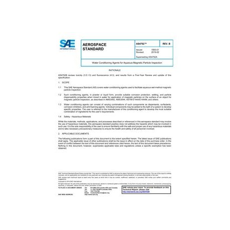 SAE AS4792B Water Conditioning Agents for Aqueous Magnetic Particle Inspection