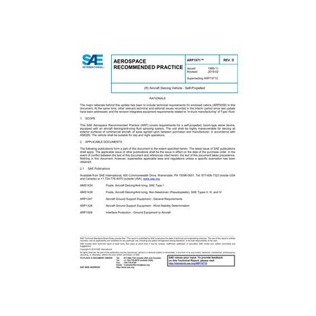 This SAE Aerospace Recommended Practice (ARP) covers requirements for a self-propelled, boom-type aerial device, equipped with an aircraft deicing/anti-icing fluid spraying system. The unit shall be highly maneuverable for deicing all exterior surfaces of commercial aircraft, of sizes agreed upon between purchaser and manufacturer, in accordance with AS6285. The vehicle shall be suitable for day and night operations.