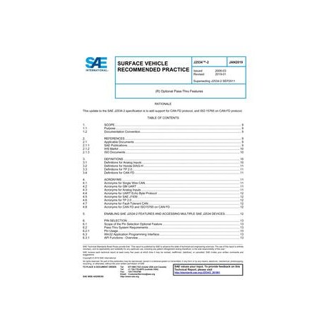 SAE J2534-1 defines a standard vehicle network interface that can be used to reprogram emission-related control modules. However, there is a need to support vehicles prior to the 2004 model year, as well as non-emission related control modules.The SAE J2534-2 document meets these needs by detailing extensions to an SAE J2534-1 specification. It is not required for an interface to be fully compliant with SAE J2534-1 specification to implement some of the features specified in this document. Together, these extensions provide the framework for a common interface to protect the software investment of the Vehicle OEMs and Scan Tool manufacturers.Only the optional features will be described by this document and are based on the December 2004 publication of SAE J2534-1.