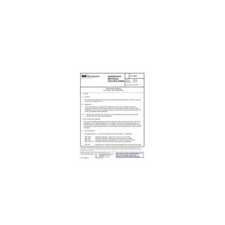 This specification defines the procedures and requirements for joining metals and alloys using the electron-beam welding process.These procedures are used typically for high-quality, electron-beam welding of aerospace components, the failure of which could cause loss of the aerospace vehicle or one of its major components, loss of control, or significant injury to occupants of a manned aerospace vehicle, but usage is not limited to such applications.
