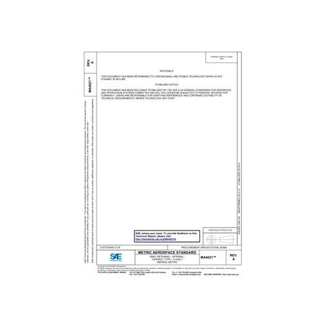SAE MA4021A RING, RETAINING - INTERNAL, TAPERED, TYPE I, CLASS 1 AMS5520, METRIC (Stabilized: Jan 2019)