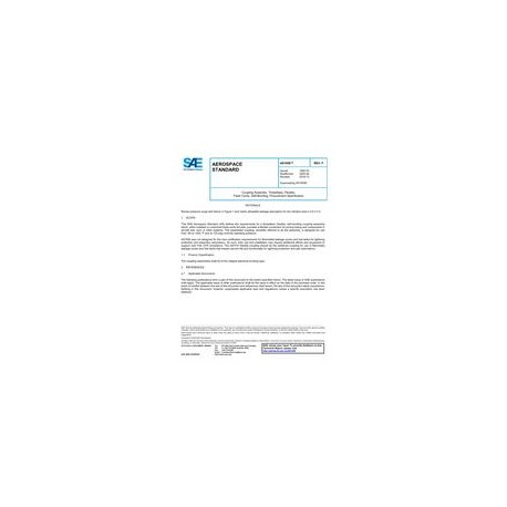 This SAE Aerospace Standard (AS) defines the requirements for a threadless, flexible, self-bonding coupling assembly which, when installed on machined fixed-cavity ferrules, provides a flexible connection for joining tubing and components in aircraft fuel, vent, or other systems. This assembled coupling, hereafter referred to as the assembly, is designed for use from -65 to +400 Degrees F and at 125 psig nominal operating pressure. AS1650 was not designed for the new certification requirements for flammable leakage zones and fuel tanks for lightning protection and assembly redundancy. As such, their use and installation may require additional efforts and equipment to support new FAA CFR compliance. The AS7510 flexible coupling should be the preferred coupling for use in flammable leakage zones and fuel tanks that require service life and functionality for lightning protection and part redundancy.