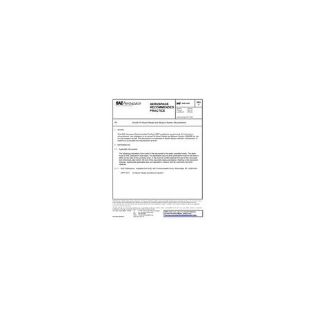 This SAE Aerospace Recommended Practice (ARP) establishes requirements for the function, characteristics and installation of an aircraft On Board Weight and Balance System (OBWBS) for use on civil transport aircraft. This document is not intended to specify design methods, mechanisms or material to accomplish the requirements set forth.