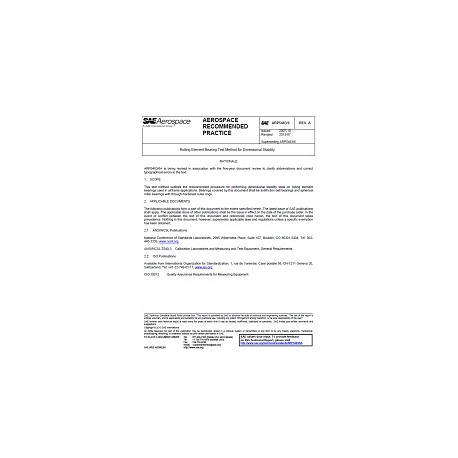 This test method outlines the recommended procedure for performing dimensional stability tests on rolling element bearings used in airframe applications. Bearings covered by this document shall be antifriction ball bearings and spherical roller bearings with through-hardened outer rings.