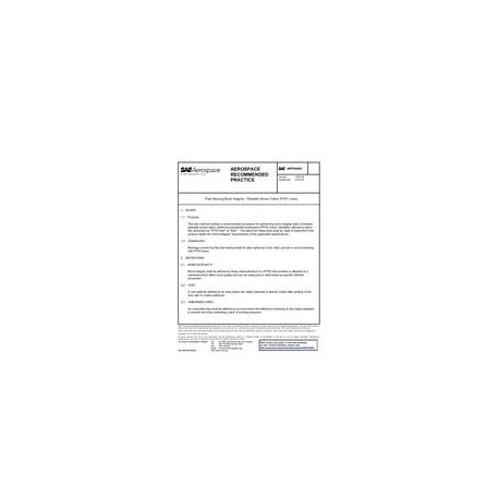 This test method outlines a recommended procedure for performing bond integrity tests of bonded peelable woven fabric reinforced polytetrafluoroethylene (PTFE) liners, hereafter referred to within this document as "PTFE liner" or "liner". The data from these tests shall be used to determine if the product meets the "bond integrity" requirements of the applicable specifications.Bearings covered by this test method shall be plain shperical, track roller, journal or rod end bearing with PTFE liners.