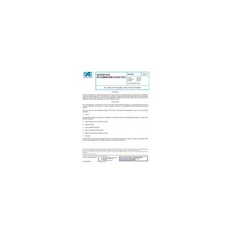 This document will cover general requirements and recommended practices for all types of landing and taxi lights. More specific recommendations for LED lights in particular can be found in ARP6402.