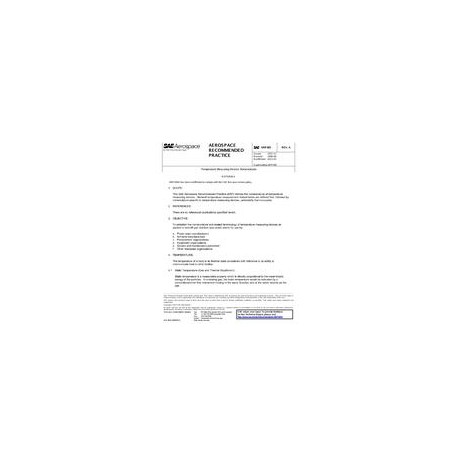 This SAE Aerospace Recommended Practice (ARP) defines the nomenclature of temperature measuring devices. General temperature measurement related terms are defined first, followed by nomenclature specifice to temperature measuring devices, particularly thermocouples.To establish the nomenclature and related terminology of temperature measuring devices as applied to aircraft gas reaction type power plants for use by: (a) power plant manufacturers, (b) airframe manufacturers, (c) procurement organizations, (d) equipment organizations, (e) service and maintenance personnel, and (f) other interested organizations.