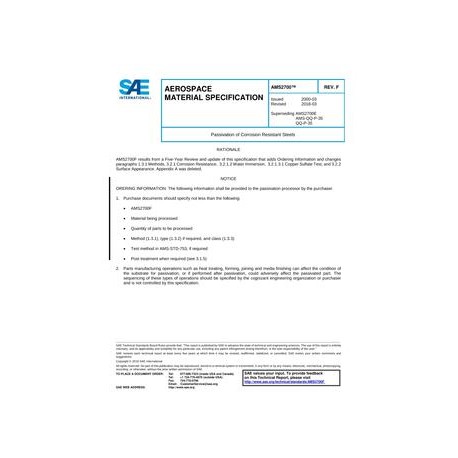 SAE AMS2700F Passivation of Corrosion Resistant Steels