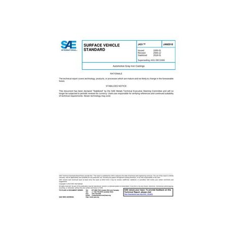 SAE J431_201801 Automotive Gray Iron Castings (Stabilized: Jan 2018)