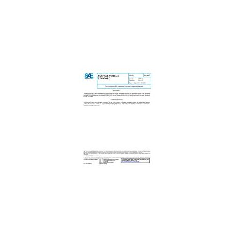 SAE J2253_201707 is intended to serve as a guide for the collection of physical, mechanical, andthermal properties of fiber-reinforced polymer composite materials for automotive structural applications. Thisdocument attempts to utilize test methods applicable to the widest range of structural materials and processeswithout compromising the integrity of the data being sought. A summary of the material characterization isshown in Section 15.