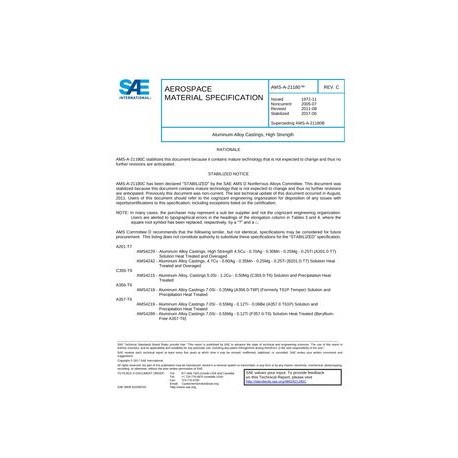 SAE AMSA21180C Aluminum-Alloy Castings, High Strength (Stabilized: Jun 2017)