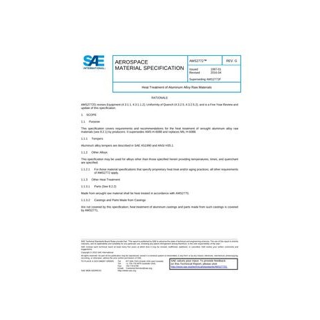 SAE AMS2772G Heat Treatment of Aluminum Alloy Raw Materials