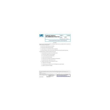 This SAE Recommended Practice describes a standardized interface that connects between a standard personal computer (PC) and vehicle. The purpose of this interface is to enable the reprogramming of emission-related control modules, in 2004 and later model year vehicles. The interface shall consist of the necessary hardware and/or software to support the requirements defined in this document. It is expected that vehicle manufacturers will provide the software application that will control the Pass-Thru Interface, to perform the actual reprogramming. The goal of this document is to ensure that reprogramming software from any vehicle manufacturer is compatible with interface supplied by any tool manufacturer. A common interface for all vehicle manufacturers reduces the tool costs for aftermarket garages, while allowing each vehicle manufacturer to control the programming sequence for the electronic control units (ECUs) in their vehicles. Aftermarket garages will be able to obtain a standardized interface from a variety of tool suppliers. This document does not limit the hardware possibilities for the connection between the PC and the interface (e.g., RS-232, RS-485, USB, Ethernetâ¿). Tool suppliers are free to choose the connection that is most appropriate for their needs. Tools that are required to be SAE J2534-1 compliant must strictly adhere to the requirements defined in this document. Applications that are required to be SAE J2534-1 compliant must strictly adhere to the requirements defined in this document. Applications that use features defined in the SAE J2534-2/xxxx document set are not considered to be SAE J2534-1 compliant.