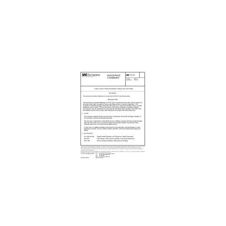 This standard establishes flexure test procedures to determine and classify the fatigue strengths of reconnectable or permanent hydraulic tube joints. The procedure is intended for conducting flexure tests of fittings and joints with high strength hydraulic tubes of various alloys such as corrosion resistant steel, Nimonic, titanium and aluminum alloy hydraulic tube for use on commercial and military aircraft. A mean stress is applied by holding system pressure in the specimens and then flexing in a rotary bending test machine. This test method conforms with SAE ARP 1185 for inch-dimensional tubing and fittings.