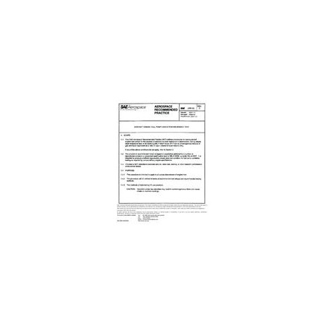 This SAE Aerospace Recommended Practice (ARP) defines procedures for testing aircraft engine fuel pumps for the purpose of determining their resistance to deterioration, during steady state endurance test, while receiving MIL-T-5624 Grade JP-4 fuel as a homogenous mixture of gas and liquid expressed as a ratio of vapor volume to liquid volume (V/L).
