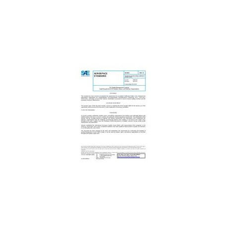 This standard defines requirements for the preparation and execution of the audit process. Additionally, it defines the content and composition for the audit reporting of conformity and process effectiveness to the 9100-series standards, the organizationâs quality management system documentation, and customer/regulatory requirements.
