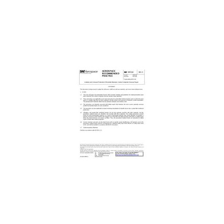 This SAE Aerospace Recommended Practice (ARP) provides methods and guidelines for isolating dissimilar repair patch materials from carbon composite structure during a repair operation. These procedures are applicable to any repair procedure for carbon fiber reinforced plastic parts in which the repair patch is a metallic alloy that can form a galvanic cell with carbon in the presence of moisture or other electrolytes. The principal patch materials addressed are aluminum, titanium, and stainless steel. The procedures are primarily concerned with bolted repairs that introduce the most severe, potential corrosion problem but bonded repairs are also considered. The procedures are also applicable to repairs involving reinstallation of metallic inserts into a carbon fiber reinforced plastic part. Fiberglass and aramid fiber reinforced plastics do not have galvanic reactions with other materials, and the procedures outlined herein are, therefore, not essential with these materials. The sealing procedures covered herein are still recommended, however, as a means of preventing moisture entry. Boron filaments can produce a galvanic reaction by contact between the tungsten core of the fiber and adjacent metal, particularly in a bolted repair where the metal fasteners can contact cut fibers. Thus, the procedures outlined herein are advisable for bolted repairs of boron fiber reinforced plastics. Generic materials and parts are described herein with no specific vendor identifications. All materials used in the procedures outlined herein shall be accompanied by a Material Safety Data Sheet (MSDS) or Safety Data Sheet (SDS) and shall be handled in accordance with MSDS instructions.