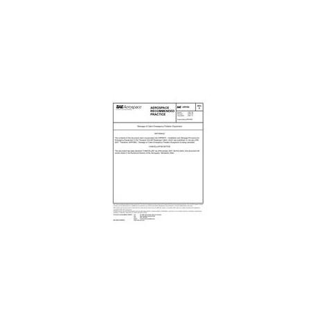This document has been declared "CANCELLED" as of November 2007. By this action, this document will remain listed in the Numercial Section of the Aerospace Standards Index.The purpose of this Aerospace Recommended Practice (ARP) is to establish the criteria for aircraft installations which shall ensure rapid and effective use of emergency flotation equipment in the event of ditching.