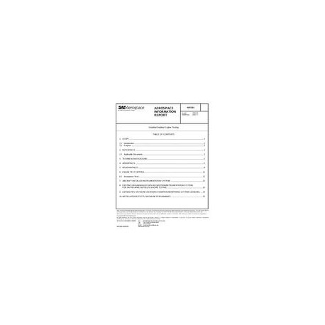 This SAE Aerospace Information Report (AIR) was written because of the growing interest in aircraft installed outdoor engine testing by the Federal Aviation Administration, airlines, charter/commercial operators, cargo carriers, engine manufactures and overhaul and repair stations. This document was developed by a broad cross section of personnel from the aviation industry and government agencies and includes information obtained from a survey of a variety of operators of fixed and rotary wing aircraft and research of aircraft and engine maintenance manuals.This document will provide aircraft operators with an overview of current industry on-the-wing engine test practices including advantages/disadvantages derived, test criteria, capabilities of remote ground-based test data acquisition/instrumentation and on-board condition monitoring systems, aircraft installation effects, and a general discussion of procedures, data, equipment and personnel required to perform safe, accurate, on-the-wing engine tests. This information is provided as a guide to help operators decide to initiate, improve, expand or cease performing installed engine testing.