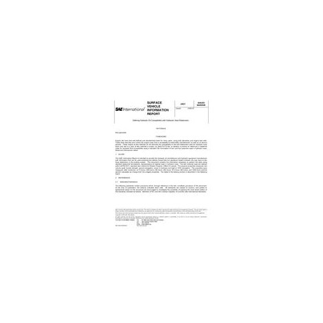 This SAE Information Report is intended to provide the hydraulic oil manufacturer and hydraulic equipment manufacturer with information that can be used predicting the relative impact that non petroleum based hydraulic oils may have on the hose elastomers in the existing system. This document contains the information necessary to perform the tests using standard elastomer formulations, representative of material used in hydraulic hose. The test methods used are defined within ASTM D471, standard test method for Rubber Property-Effect of Liquids. The physical properties measured, are volume swell, tensile strength, percent elongation, shore A hardness and load at 100% elongation. The properties were measured, after immersion, at 72 hours, 168 hours, 336 hours, 504 hours, 672 hours, 840 hours, and 1008 hours and the percent calculated as change from the unaged properties. The detail of the testing process is described in the following report.