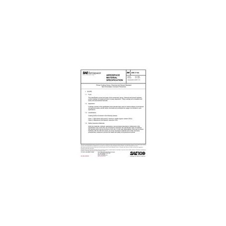 This specification covers two types of two-component, epoxy, chemical and solvent resistant primer coatings formulated primarily for spray application. These coatings are compatible with epoxy and polyurethane topcoats.Coatings covered in this specification have typically been used on metal surfaces of commercial and general aviation aircraft where chromates are prohibited but usage is not limited to such applications.