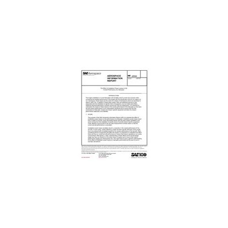 The purpose of this SAE Aerospace Information Report (AIR) is to illustrate the effect of installation power losses on the performance of a helicopter. Installation power losses result from a variety of sources, some associated directly with the basic engine installation, and some coming from the installation of specific items of aircraft mission specific equipment. Close attention must be paid to the accurate measurement of these losses so that the correct aircraft performance is calculated.Installation power losses inevitably result in a reduction in the overall performance of the aircraft. In some cases, careful attention to detail will allow specific elements of the overall loss to be reduced with immediate benefit for the mission performance of the aircraft. When considering items of equipment that affect the engine, it is important to understand the effect these will have on overall aircraft performance to ensure that mission capability is not unduly compromised. Alternatively, a clear understanding of these effects at the aircraft design stage may have an influence on the initial choice of engine size to ensure that mission performance targets are subsequently met. This report aims to give a general understanding of the effect of installation power losses on helicopter performance by the use of a set of example calculations.