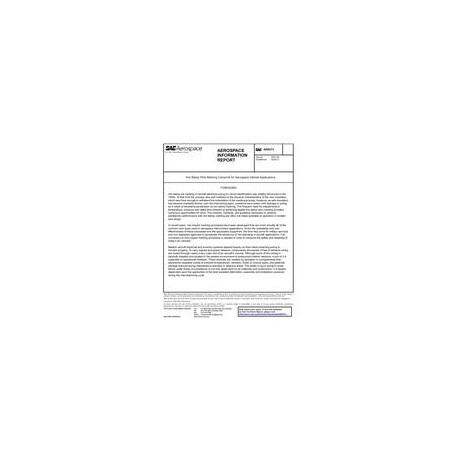 This SAE Aerospace Information Report (AIR) discusses the often overlooked relationship between hot stamp marking and the environmental conditions that contribute aircraft wiring problems and discusses current beliefs of military service experts, regulatory agencies and industry standard writing bodies about the potential hazards imposed by the hot stamping process.